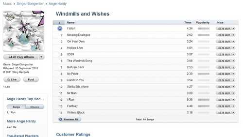 Ange Hardy's debut album "Windmills and Wishes" is now just £4.49 on iTunes (and £4.99 from Amazon.co.uk).